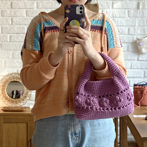 블로썸백의 디자인을 응용하여 제작한 '디어마미백'입니다. 힘있는 코튼실로 제작하여 물건을 넣어도 크게 쳐짐이 없으며, 계절 상관없이 사계절 함께해주실 수 있습니다. 러블리하면서도 캐쥬얼하며, 편하고 멋스럽게 데일리백으로 사용 할 수 있으면서 무드있는 공간에서도 멋있게 함께하기 좋은 가방입니다.